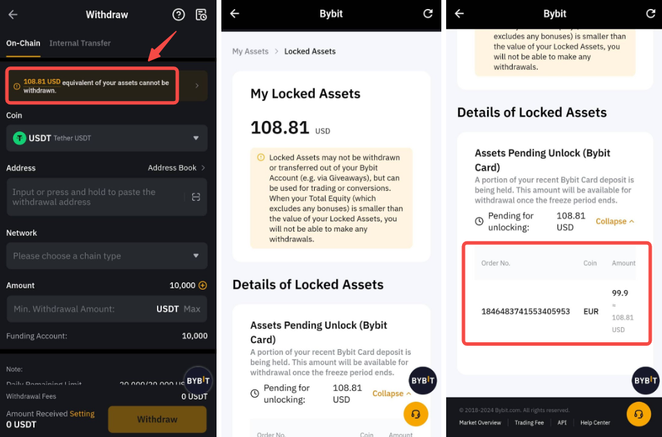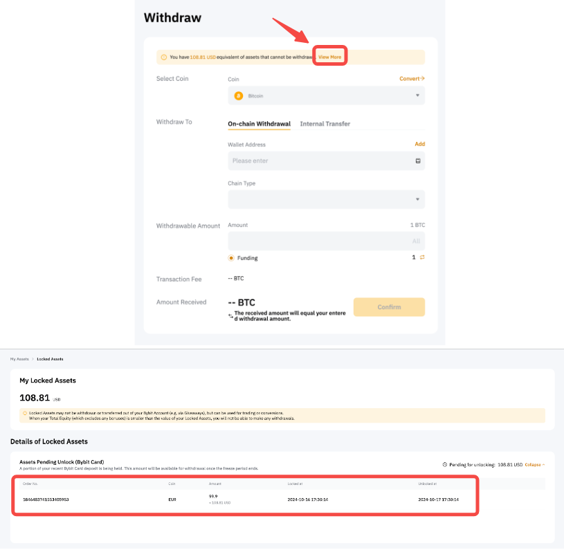 To protect the security of your funds, any direct deposits to the Bybit card will be frozen for 24 hours. You can check the details on the My Locked Asset page.