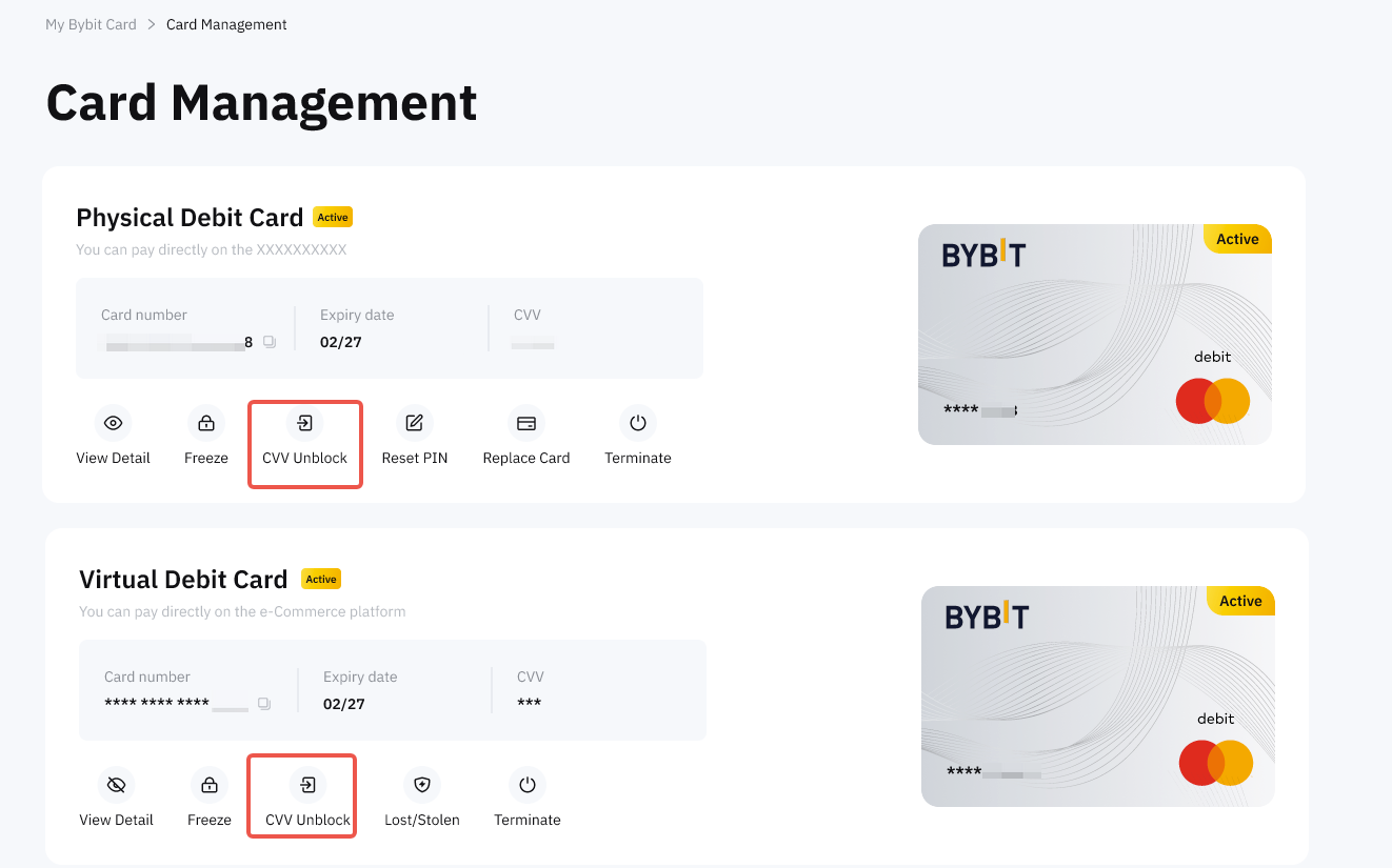 You may unblock your CVV on the Card Management page → click on CVV Unblock verify with security verification.