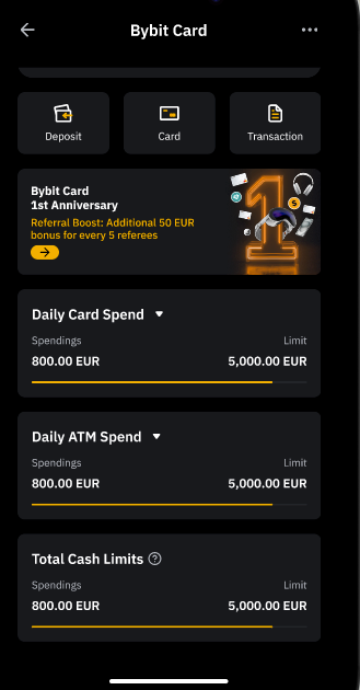 Where to check my Bybit Card Spending, ATM Limit and Total Cash Limits?