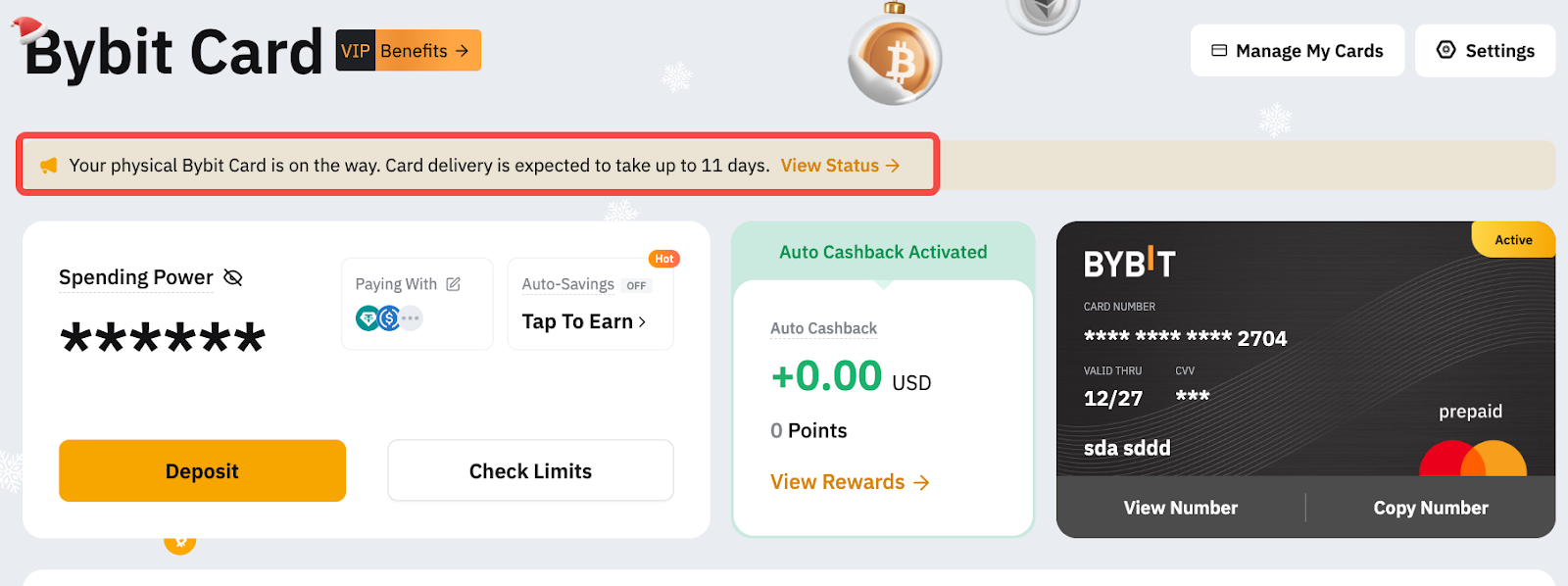 — To learn more about the card delivery status descriptions, please refer to the FAQ — Bybit Card General Inquiries.
