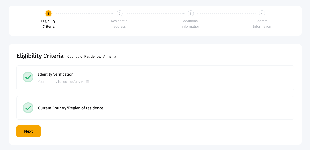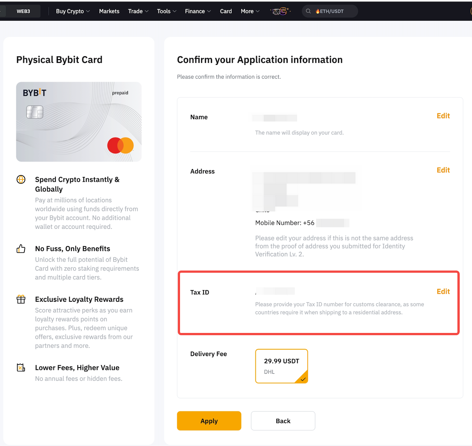 Note: Bybit Card has more stringent requirements for Identity Verification. Hence, you may be required to update your Identity Verification even though you have already completed it on your Bybit account previously.
