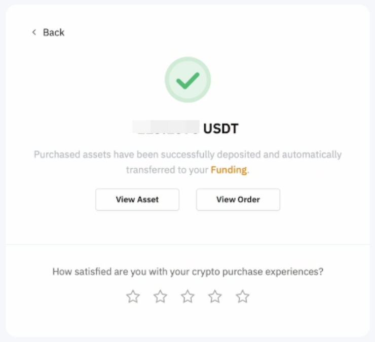 - Click on View Asset to check your balance. You’ll receive your order status by email and notification if you've enabled them.