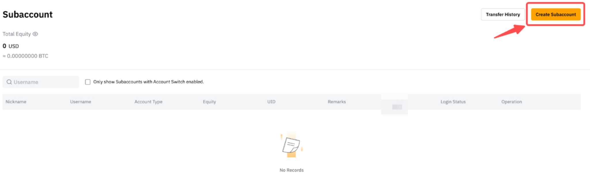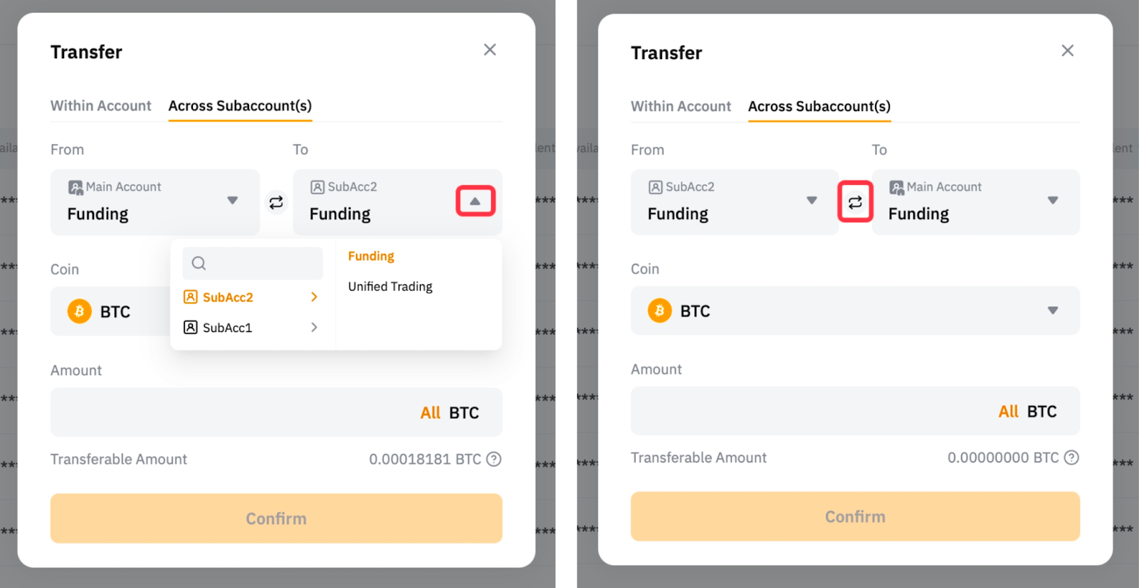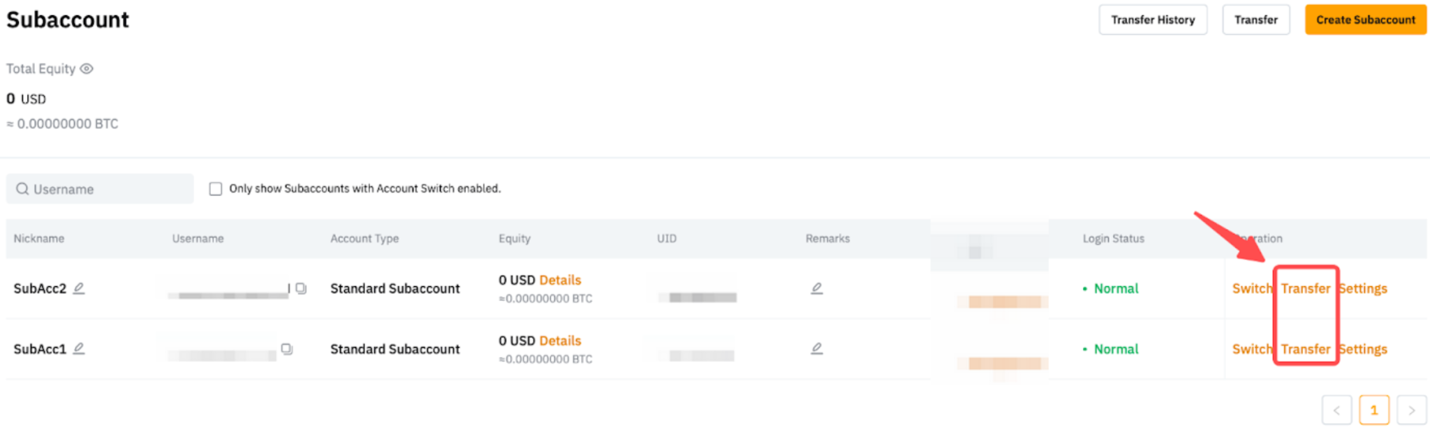 Alternatively, you can click on Transfer Asset on the Subaccount page of your Main Account to transfer assets between any accounts instantly and without any fees.