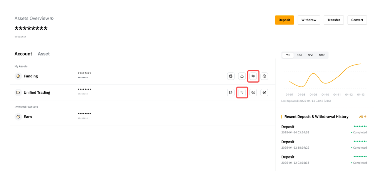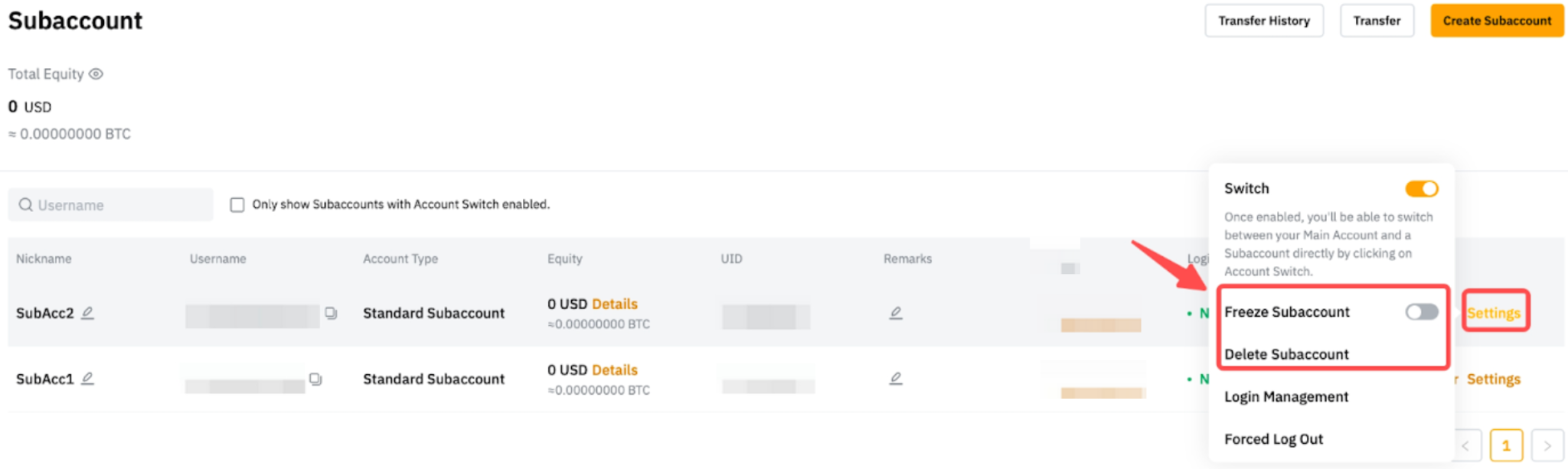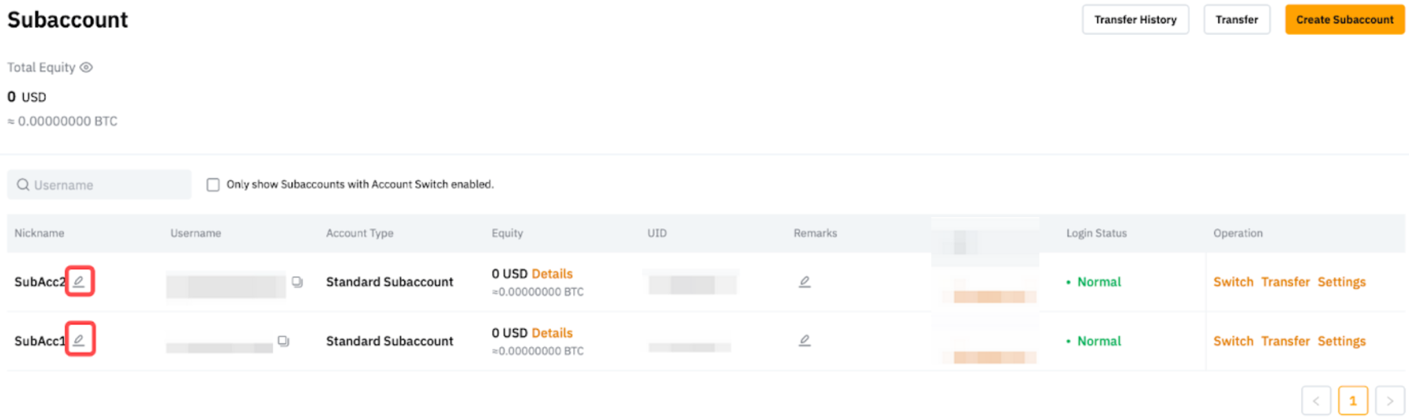 Alternatively, you can click on Transfer Asset on the Subaccount page of your Main Account to transfer assets between any accounts instantly and without any fees.