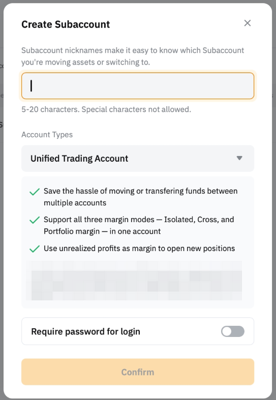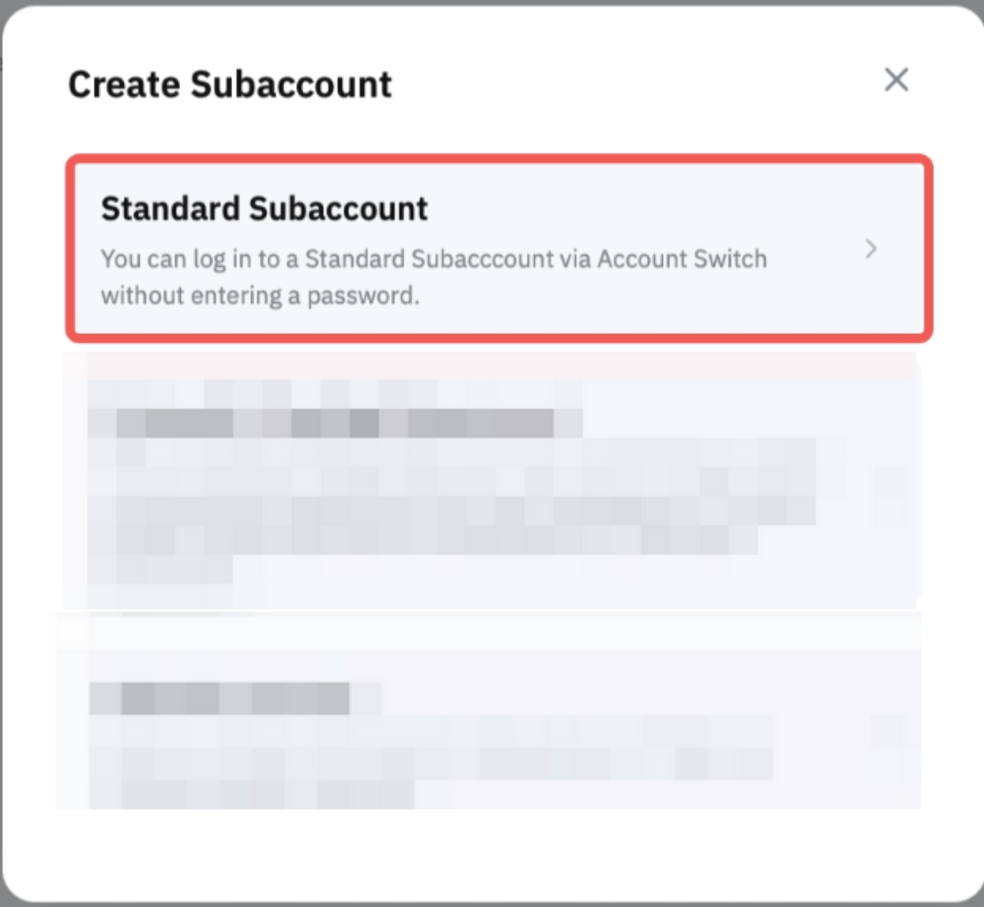 For Standard Subaccount, you will only be required to enter a username without password settings. In this case, you can only log in to this Subaccount via Account Switch from Main Account. If you want to log in via the login page, you can set a password during account creation or afterwards.