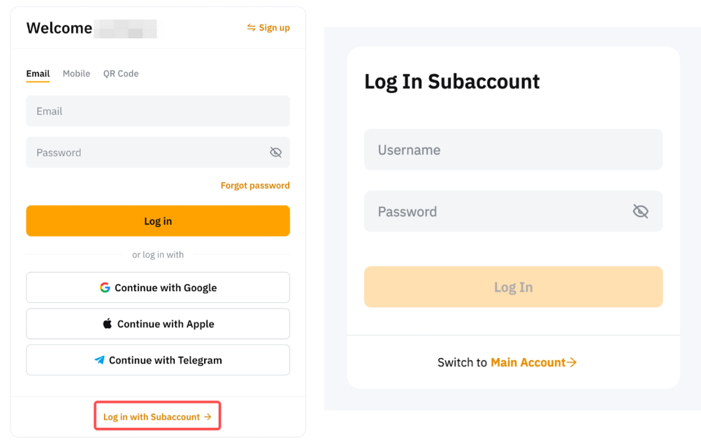 — If you log in to your Subaccount directly via the login page, you will not be able to switch back to the Main Account.