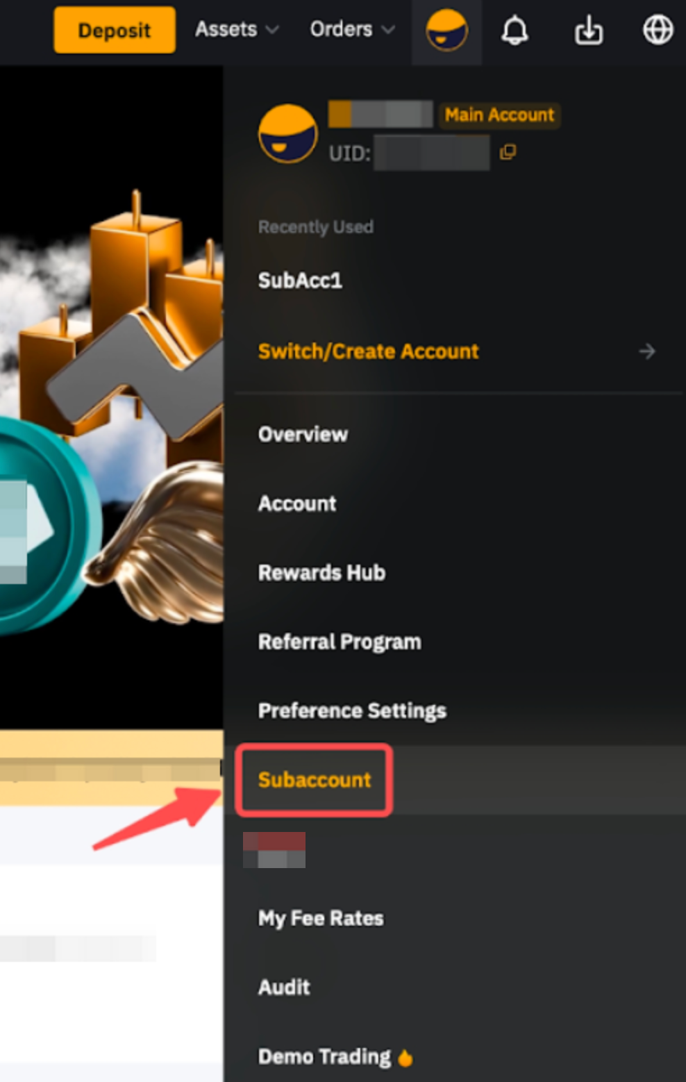 Step 1: Log in to your Bybit Georgia Main Account and click on Subaccount under the profile icon.