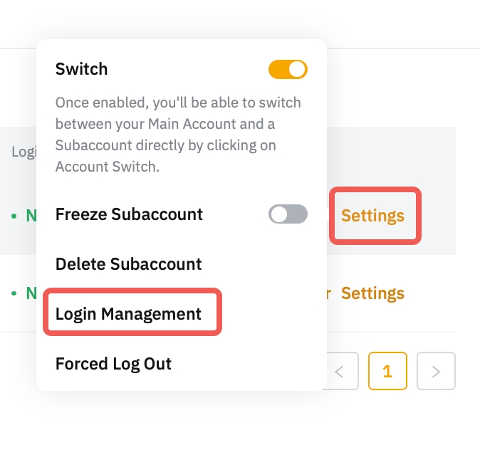 To disable the Google Authenticator bind on the Subaccount, go to the Subaccount page on your Main Account and click on Settings → Login Management for the relevant Subaccount.