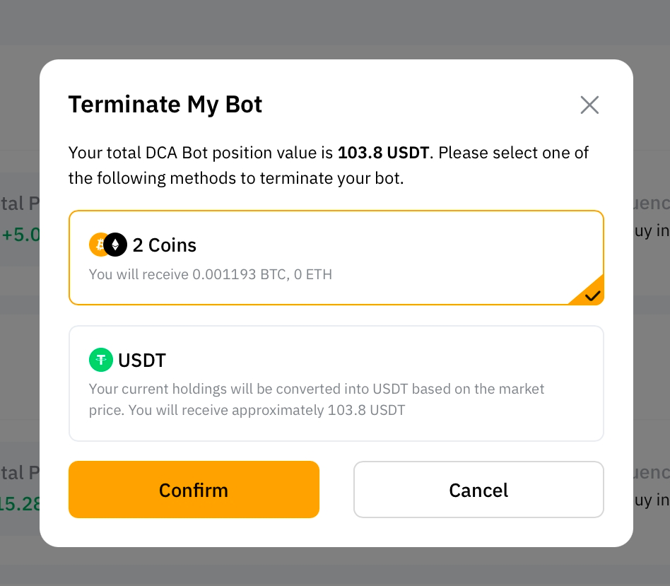 *If the total investment amount triggers the maximum investment amount, the DCA bot will automatically terminate and all assets will be transferred to your Funding Account.