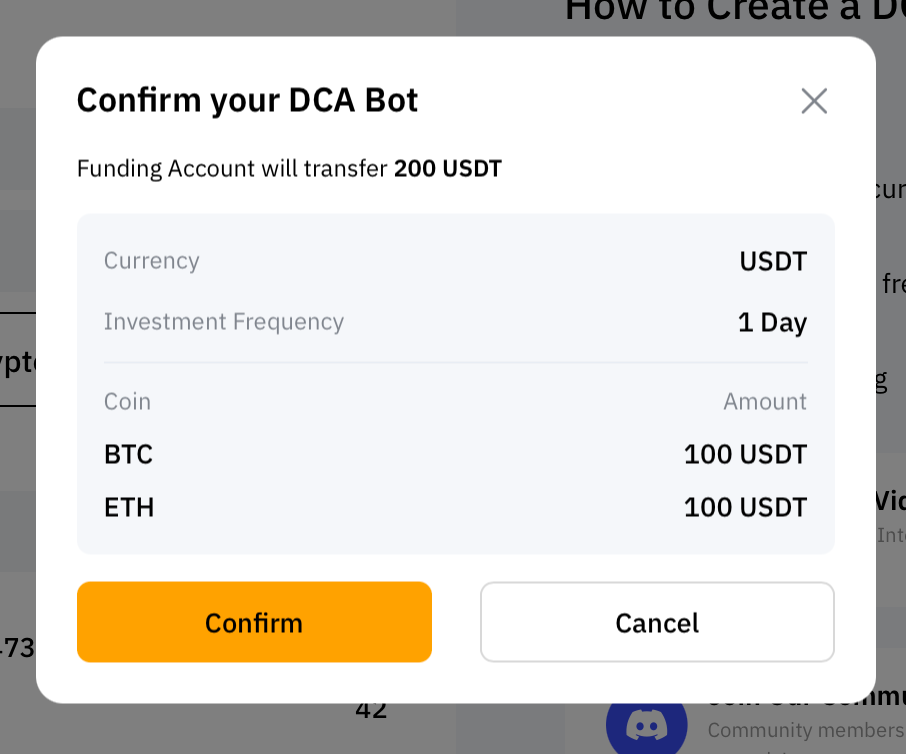Please note that your first DCA investment starts when you successfully create a DCA bot.