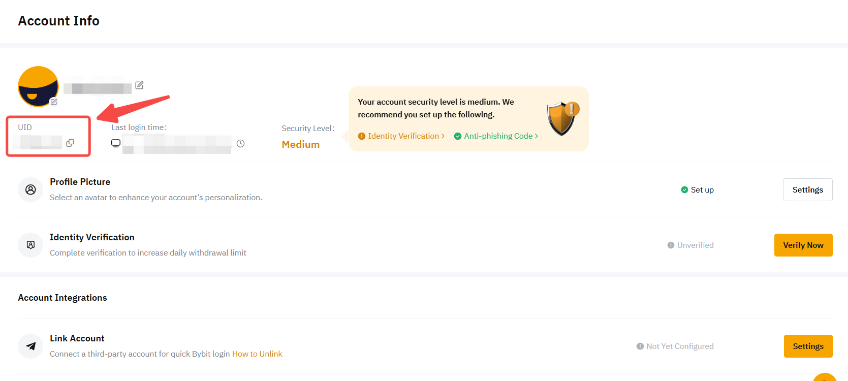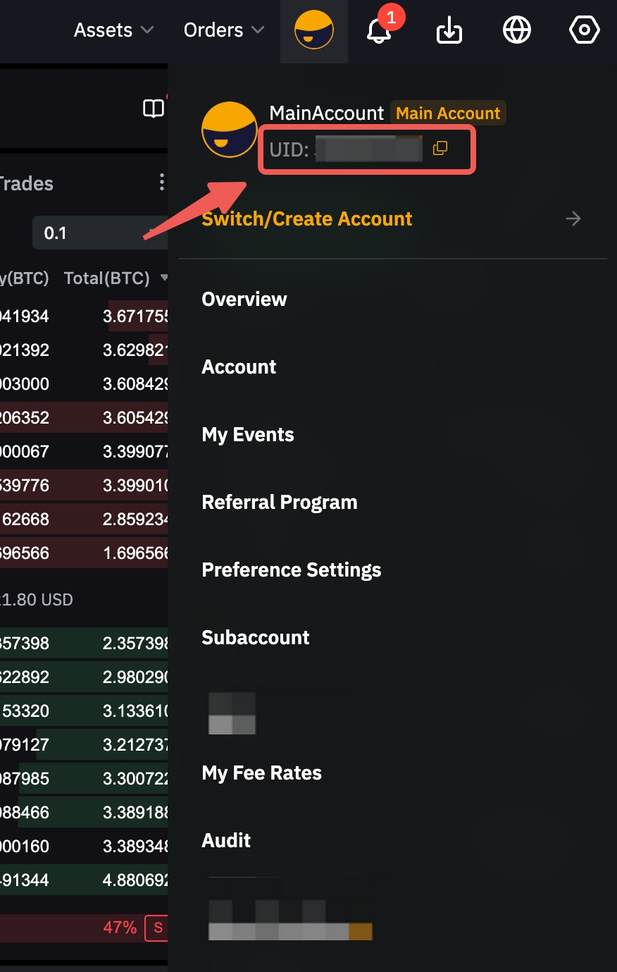Method 2: From the top right corner of any Bybit Georgia webpage, navigate your cursor to the “Profile” icon, and you will be able to see your UID from the dropdown menu.
