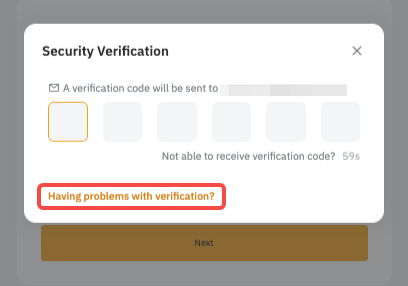 — If you have permanently lost your email address, phone number or Google Authentication, please click on ‘Having problems with verification?’ to reset your security option. You can follow this guide for more details.