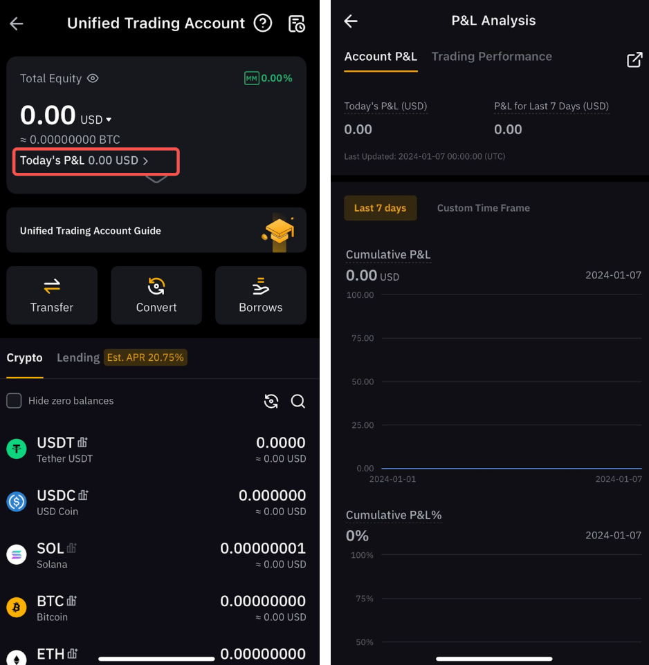 ანგარიშის P&L ანალიზი შექმნილია იმისთვის, რათა მომხმარებლებს დაეხმაროს მათ მფლობელობაში არსებული კრიპტო აქტივების მოგებისა და ზარალის ანალიზში და საკუთარი შედეგიანობის ვიზუალიზაციაში განსაზღვრულ პერიოდში.