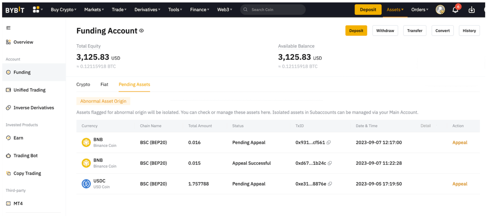 | Appeal Successful | The appeal is successful, you can proceed to make a withdrawal on the Assets Page. |