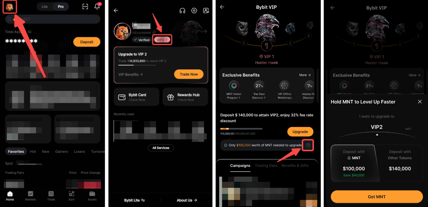 თუ აპლიკაციას იყენებთ, ზედა მარცხენა კუთხეში შეეხეთ თქვენი პროფილის სურათს, შემდეგ კი თქვენს VIP დონეს. შემდეგ, შეეხეთ კითხვის ნიშნის ხატულას „განახლებისთვის საჭიროა მხოლოდ $ {გარკვეული თანხა} MNT“-ის გვერდით, რათა ნახოთ, კიდევ რამდენის შეტანა გჭირდებათ დონის ასამაღლებლად.