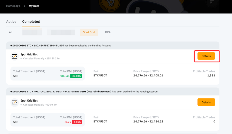 ამჟამად, შეგიძლიათ გქონდეთ მაქსიმუმ 50 Spot Grid Bots ერთდროულად მუშაობენ.