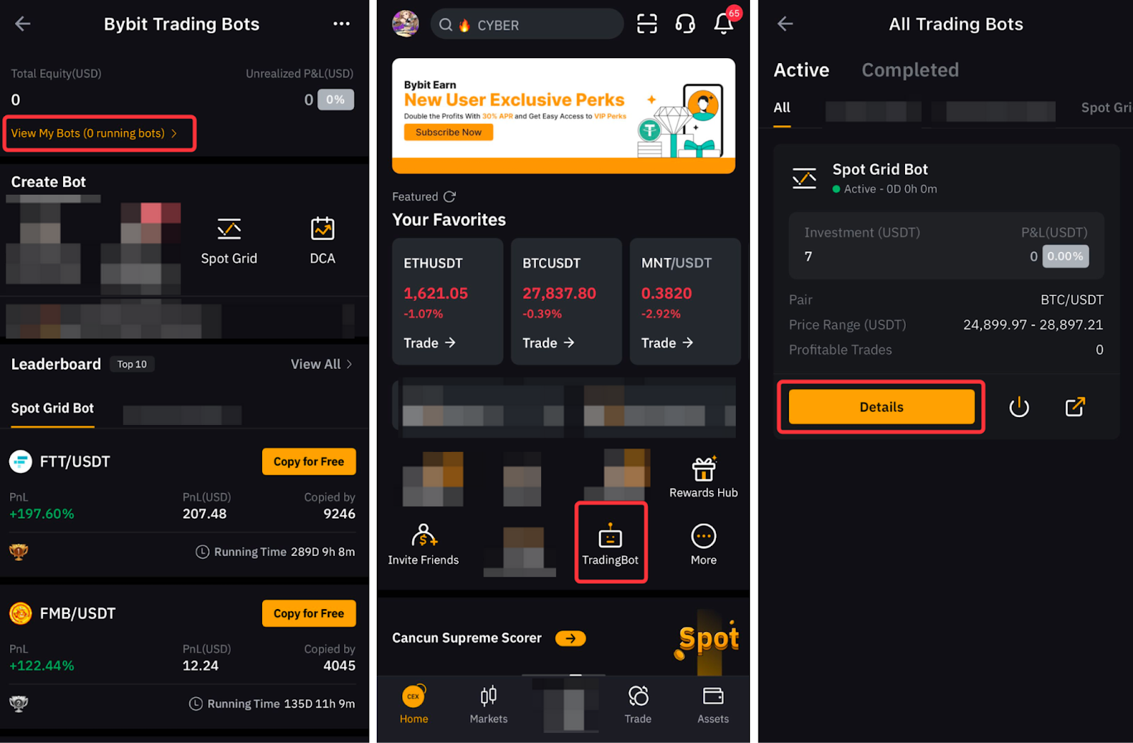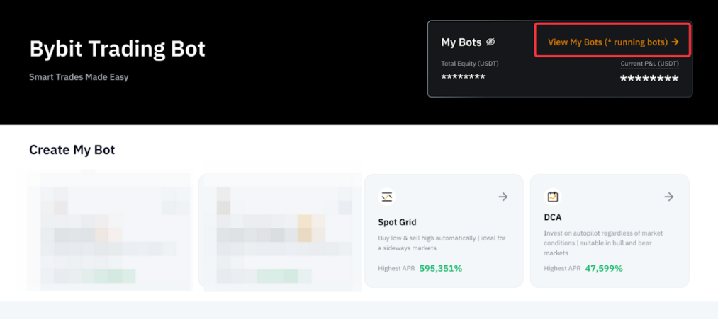 Bybit Georgia აპლიკაციაში გადადით სავაჭრო ბოტები → ჩემი ბოტების ნახვა → დეტალები თქვენი ბოტის დეტალების სანახავად.