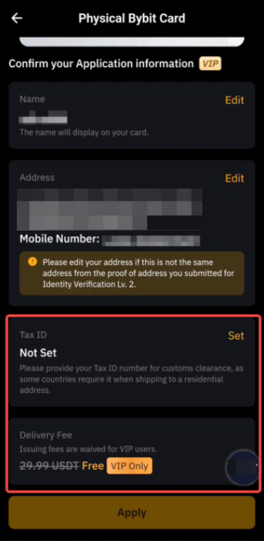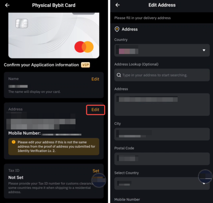 ნაბიჯი 3: შეცვალეთ თქვენი მიწოდების მისამართი. მიწოდების მისამართი უნდა ემთხვეოდეს თქვენი ვირტუალური Bybit ბარათის მისამართის დადასტურებისთვის მოწოდებულ მისამართს.