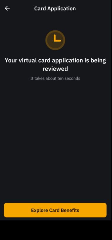ნაბიჯი 6: წარმატებით გაგზავნის შემდეგ, თქვენი ვირტუალური Bybit ბარათის განაცხადი განხილვის პროცესშია და ეს პროცესი, როგორც წესი, რამდენიმე წუთს გრძელდება. ზოგიერთ შემთხვევაში, განხილვას შეიძლება შვიდ (7) სამუშაო დღემდე დასჭირდეს. თქვენი განაცხადის დამტკიცების შესახებ შეტყობინებას ელექტრონული ფოსტით მიიღებთ.