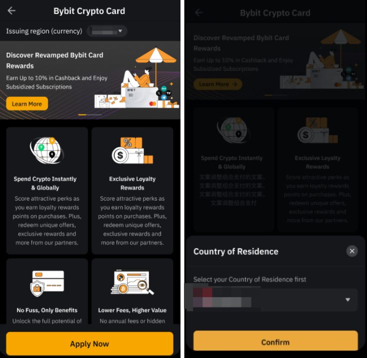 შენიშვნა: Bybit ბარათი ამჟამად მხოლოდ შეზღუდულ ქვეყნებშია ხელმისაწვდომი. თუ თქვენს მიერ არჩეული საცხოვრებელი ქვეყანა მხარდაჭერილ ქვეყნებს შორის არ არის, ჩვენ ახლავე დავარეგისტრირებთ თქვენს ინტერესს და გაცნობებთ, როდის გამოვა Bybit ბარათი თქვენს ქვეყანაში.
