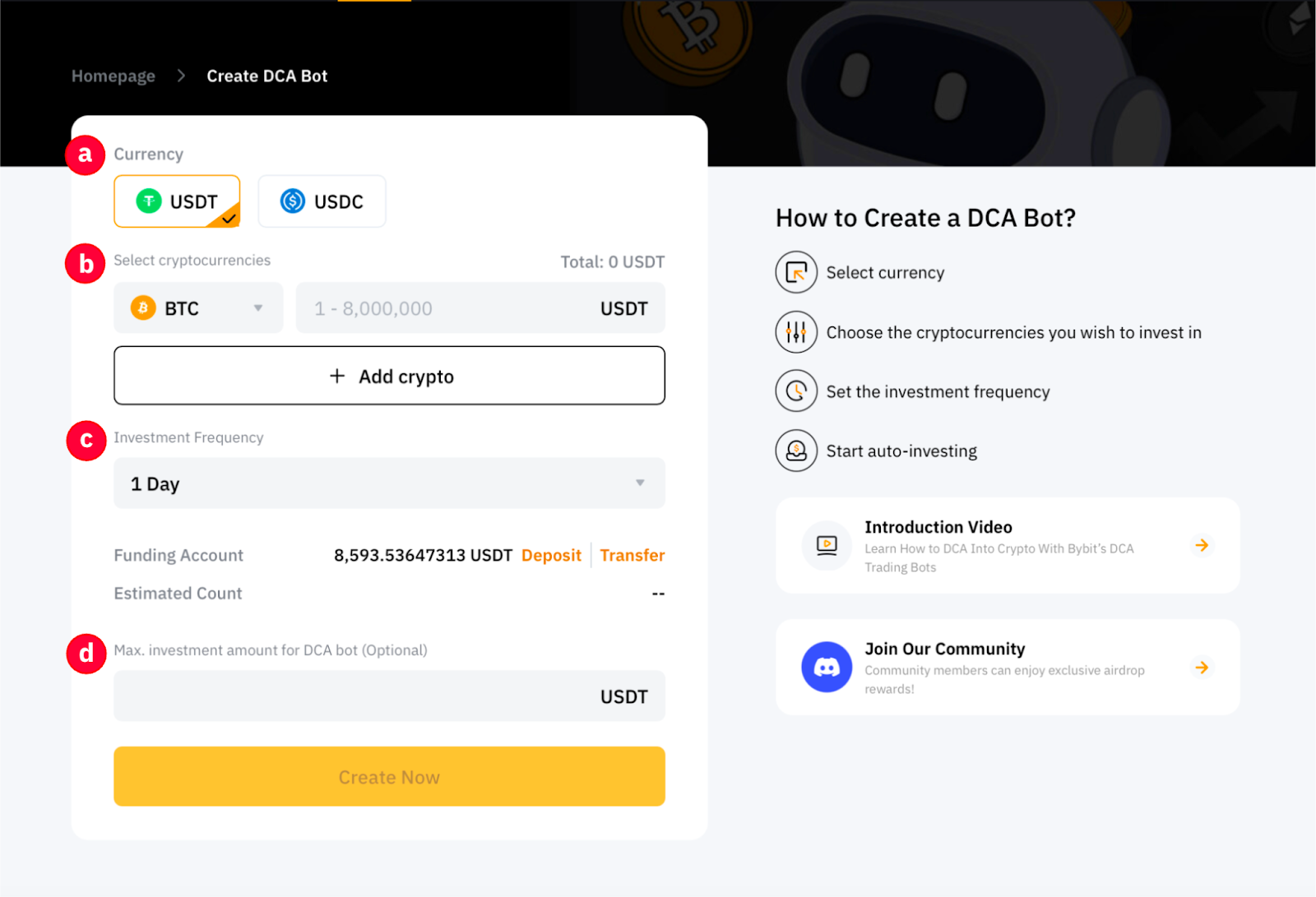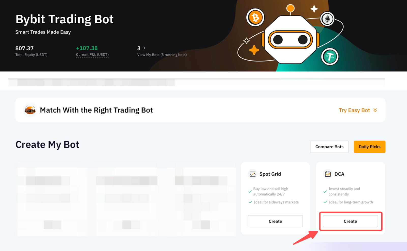 ნაბიჯი 2: შექმენით თქვენი DCA ბოტი შექმნა-ზე დაწკაპუნებით რომ გადახვიდეთ DCA ბოტის შექმნის გვერდზე.