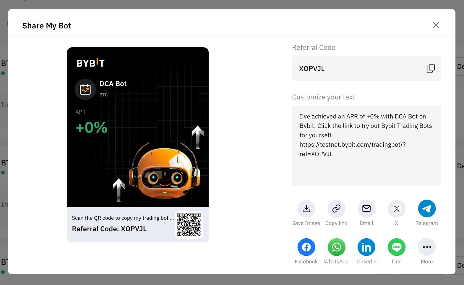ნაბიჯი 2: დააწკაპუნეთ დაკოპირების ხატულაზე Bybit Georgia-ს სავაჭრო ბოტის გვერდის URL თქვენს მეგობრებთან გასაზიარებლად.