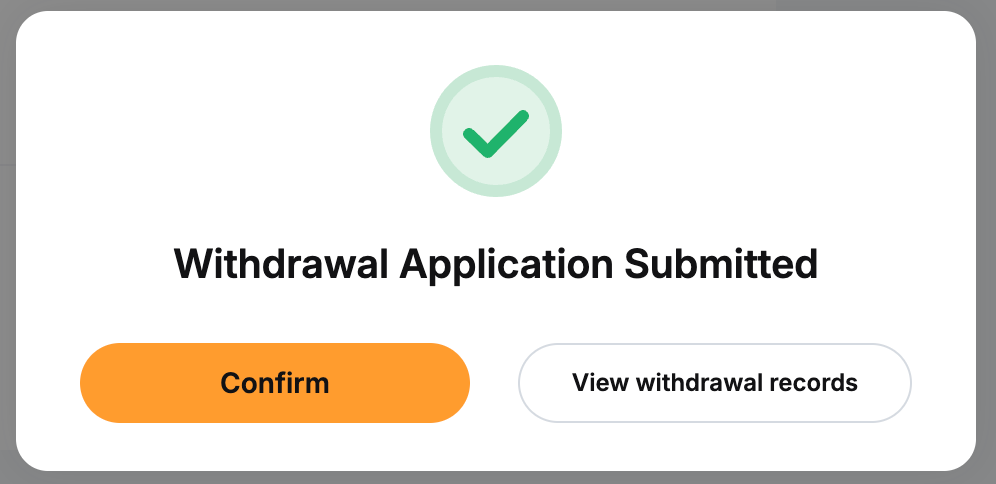 ნაბიჯი 3: ამომხტარ ფანჯარაში დააჭირეთ ღილაკს „გაგზავნა“ და თქვენ გადამისამართდებით თანხის გატანის დადასტურების გვერდზე.