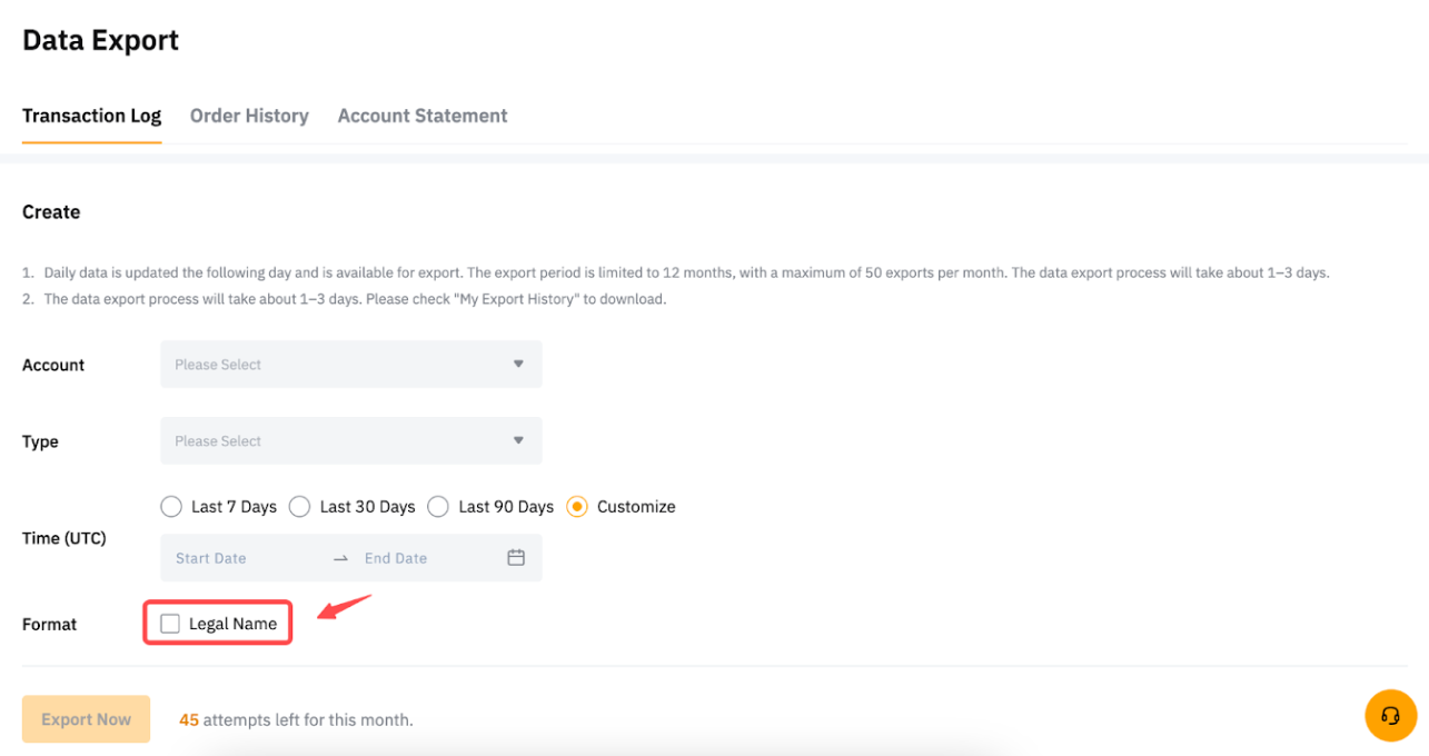 — ზოგიერთი მონაცემი შეიძლება არ იყოს ხელმისაწვდომი ანგარიშის ამონაწერში, როგორიცაა სპოტ ორდერის ისტორია. ამ მონაცემების ექსპორტისთვის, გთხოვთ, პირდაპირ გადახვიდეთ თითოეულ პროდუქტის ისტორიის გვერდზე და დააწკაპუნეთ ექსპორტის ღილაკს ზედა მარჯვენა კუთხეში.