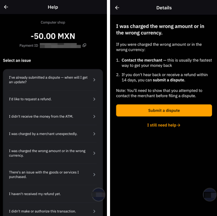 — თითო ტრანზაქციაზე მხოლოდ ერთი დავის წარდგენა შეგიძლიათ. თანხის დაბრუნების დუბლიკატი მოთხოვნები არ მიიღება.