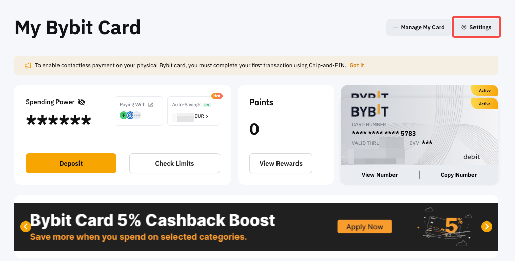 Bybit ბარათის მართვისთვის