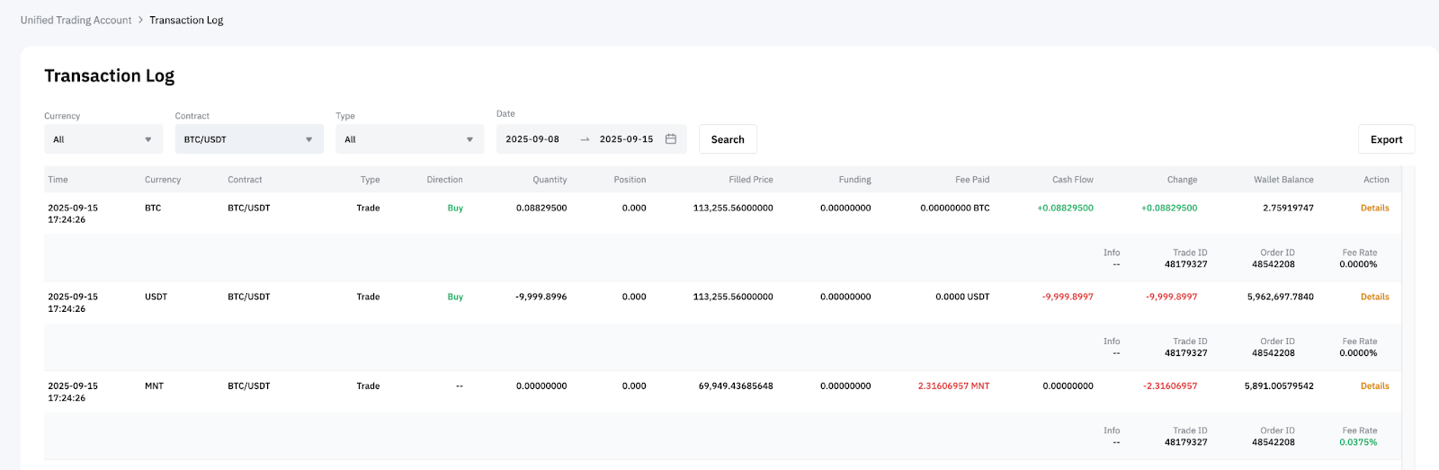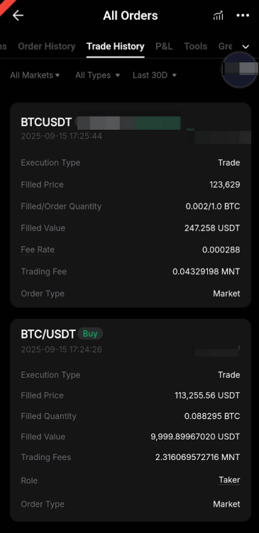 — Для закрытых и реализованных прибылей и убытков любая часть сборов, выплаченных в MNT, будет конвертирована обратно и записана в USDT или USDC, в зависимости от типа контракта.