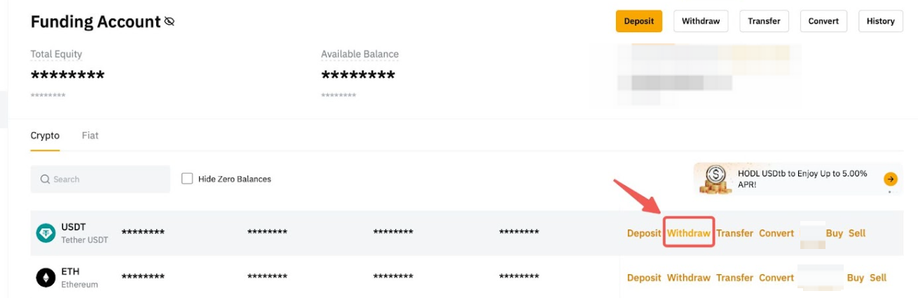 Примечание: Все выводы средств могут осуществляться только через аккаунт финансирования. Если монеты, которые вы желаете вывести, находятся на других аккаунтах, для начала переведите активы на аккаунт финансирования.